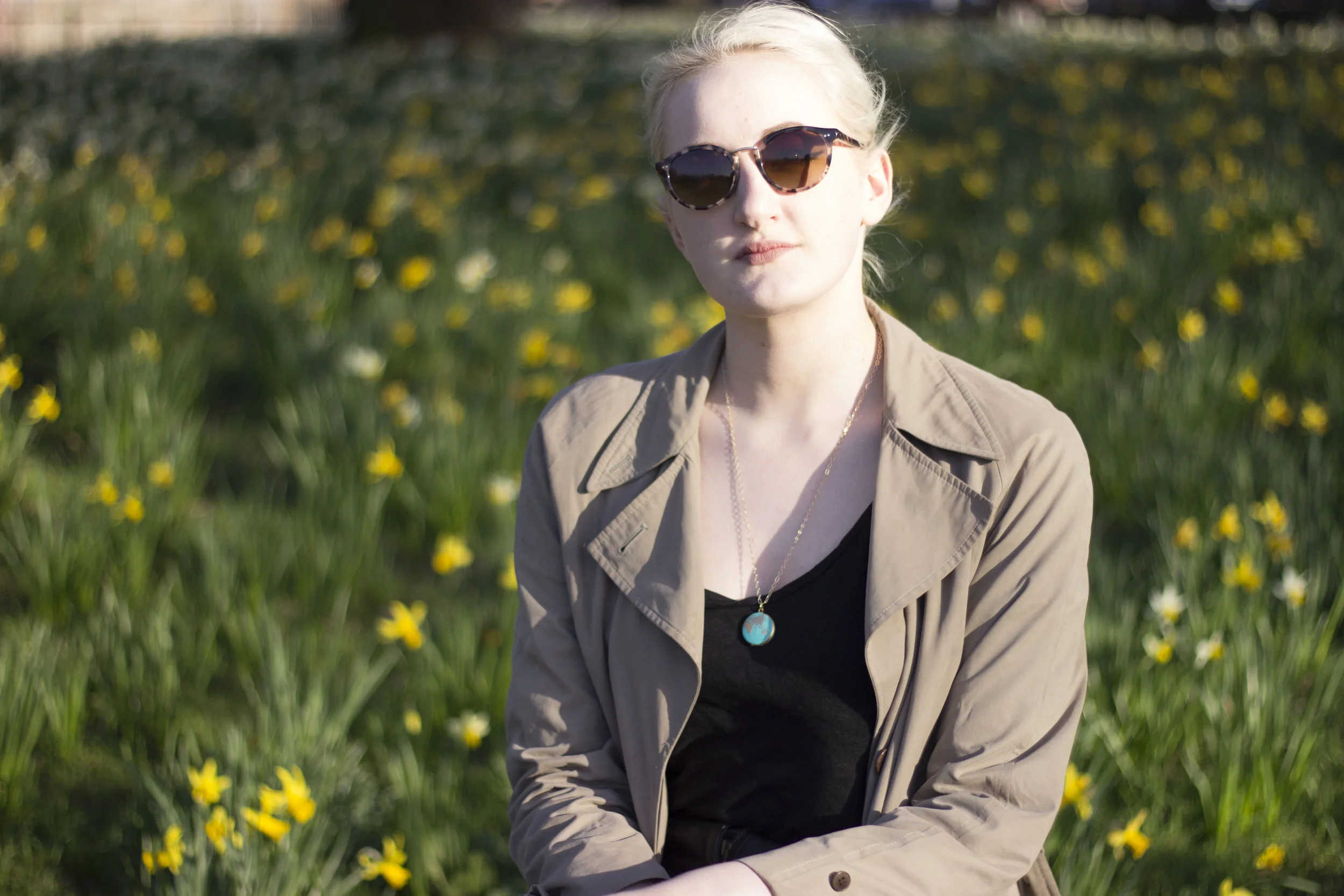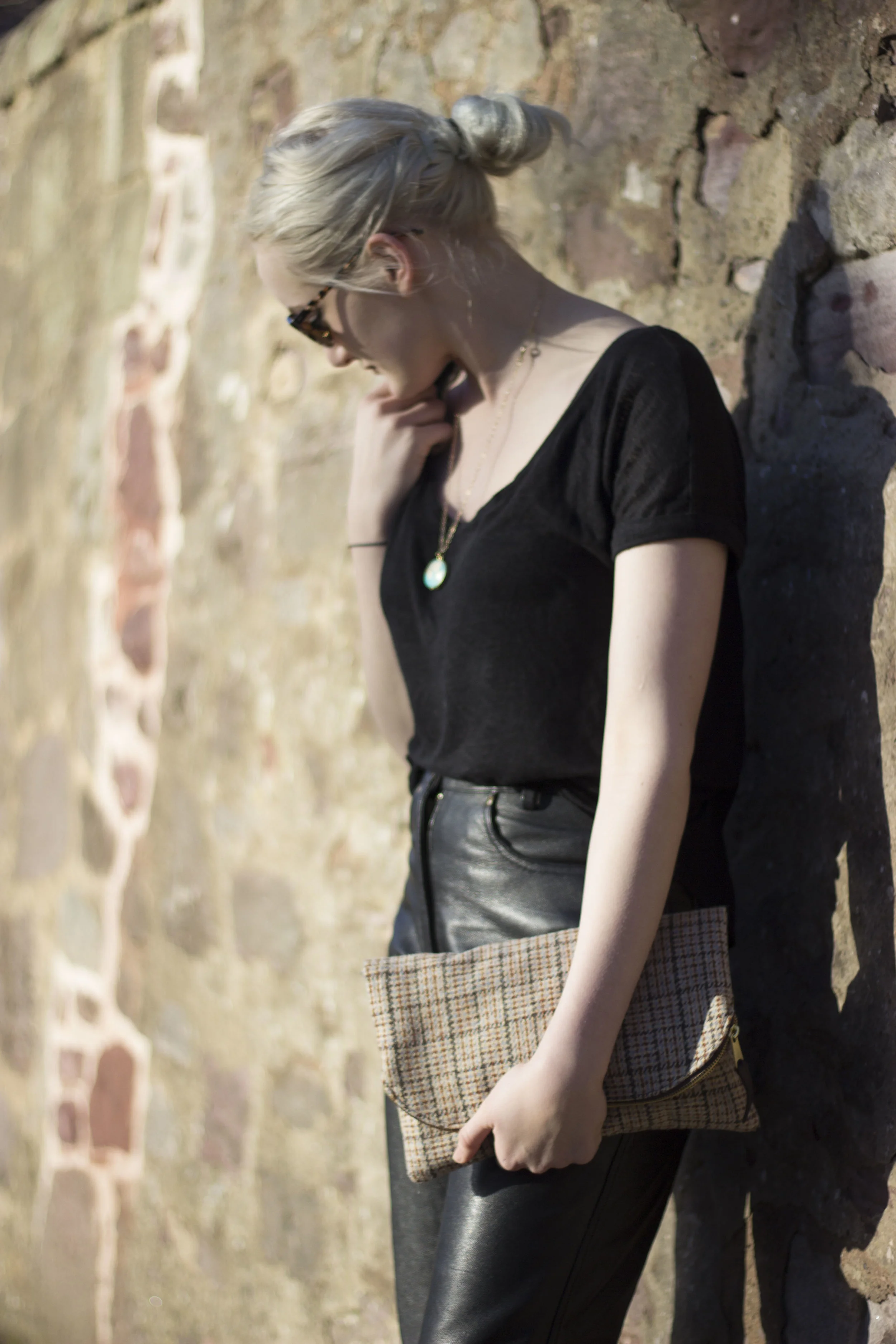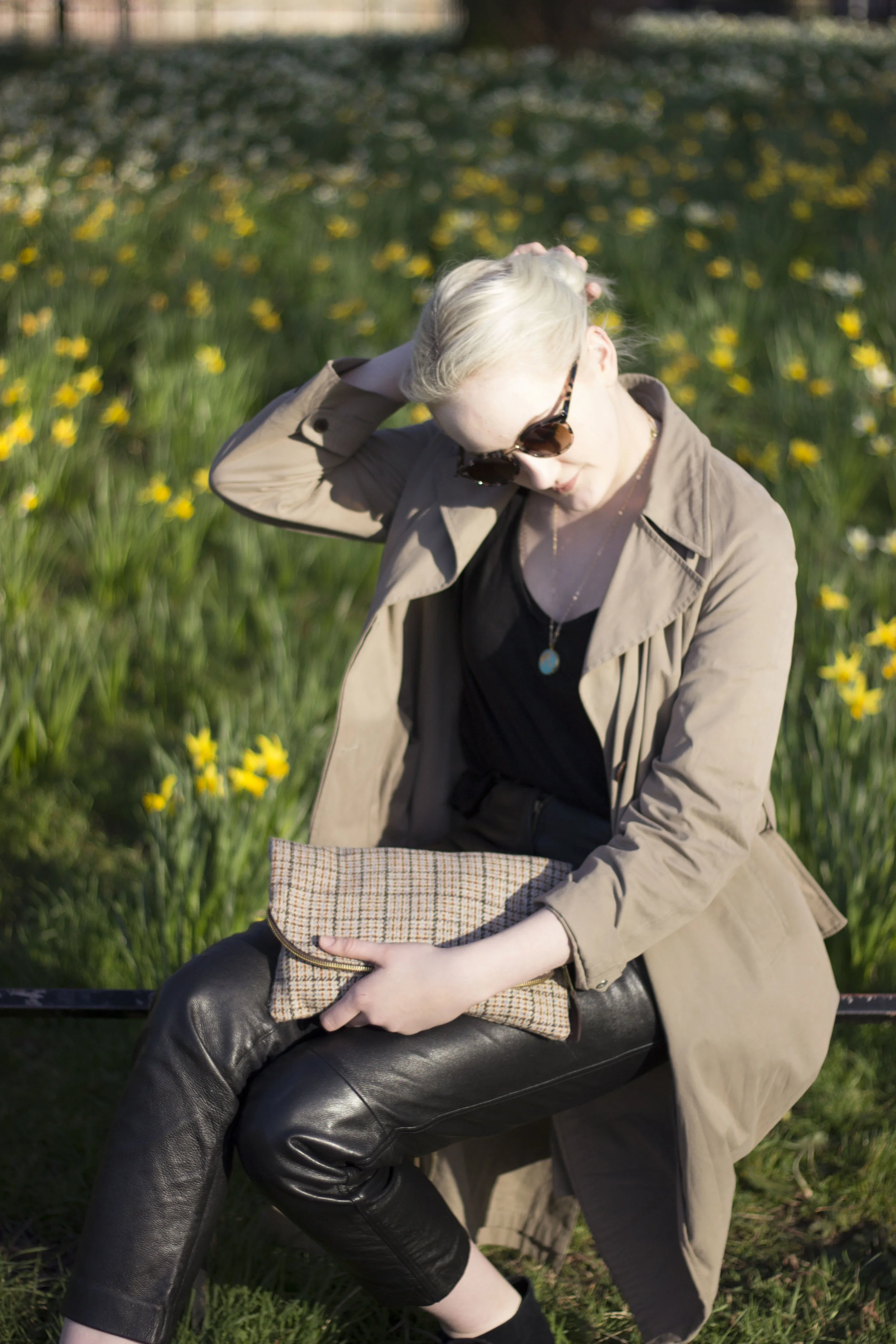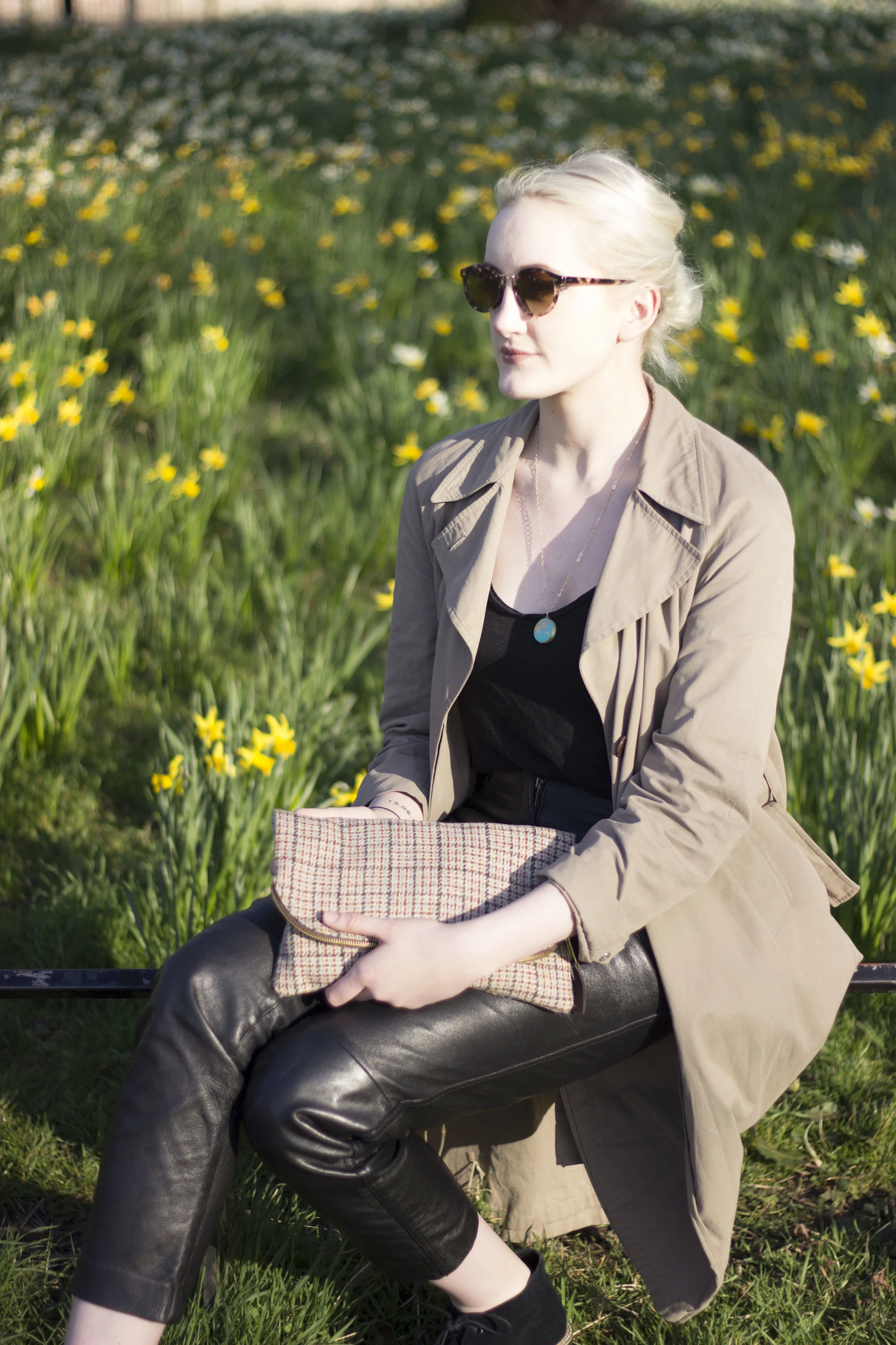 Spring is really tough season of dressing well for me. I never know what to wear; I'm definately a winter girl (love me some big coats and fluffy jumpers) or a summer girl (pretty dresses please), but I hate the transition period, expecially here in Scotland where the weather is totally unpredictable. The one item I can totally count on is my classic Aquascutum trench coat from Mr Ben's, a vintage shop in Glasgow. Its cool and light but still wind and waterproof. Plus it makes me feel like a Burberry girl. I've paired it here with an old plain t-shirt, vintage leather trousers, and some topshop lace-up shoe boots, all in black so I could let the accessories shine.