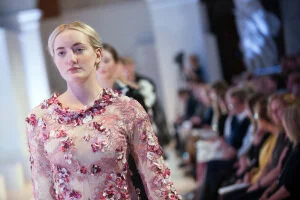 Another talented designer I walked for was Alice Firman, a firm (pun definitely intended) favourite for many. Her gorgeous collection was covered with intricately appliquéd petals, hand-painted details, luxurious tailoring, and all topped off with cowboy boots and a badass theme song (