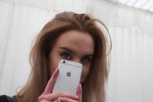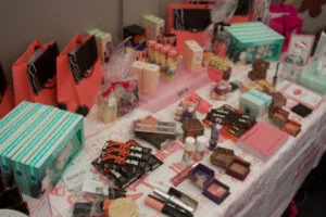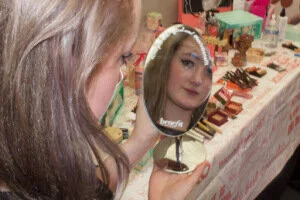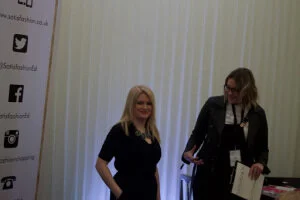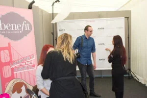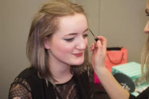 Blogger Kate Re getting her make up done by Veronica from Benefit
