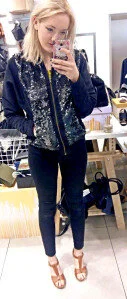 As you can see above, the studio space is absolutely lush, and is shared by Deadsleekit, Rachel McMillan, Barbra Kolasinski, and of course Birds of Prayers. I absolutely fell in love with all the clothes from this talented bunch, especially this suede and sequin bomber jacket by Rachel McMillan! (please excuse the selfie!)