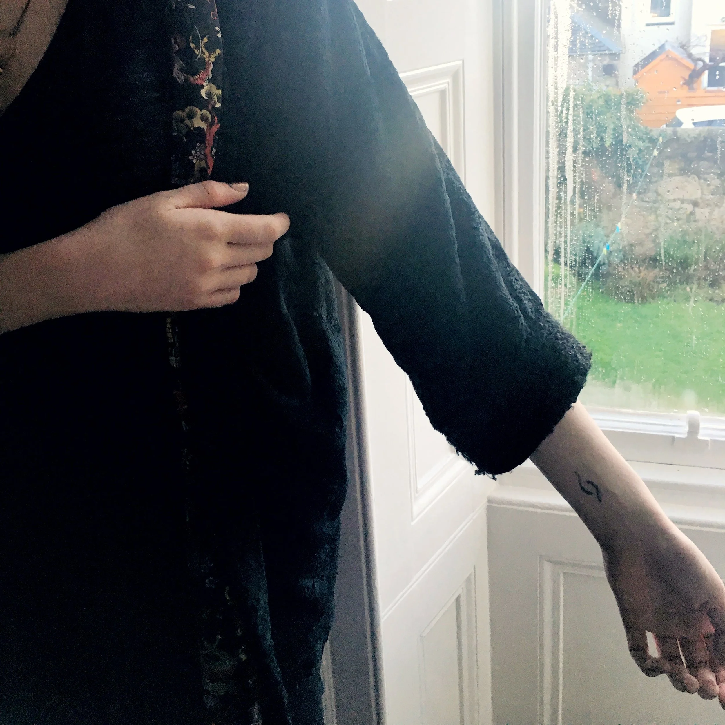 This jacket was handmade by my great-grandmother Iris Merle in around 1952, when she was in her early fifties.She was very poor but dressed like she was rich the keep up appearances, making her own clothes rather than buying from big brands, travelling on work as a journalist around the world which was very unusual for a woman in the 1950's. When Iris died, she passed the jacket on to her daughter-in-law Peggy (my grandmother) who wore it a lot, until it got forgotten about and retired to the back of the wardrobe.