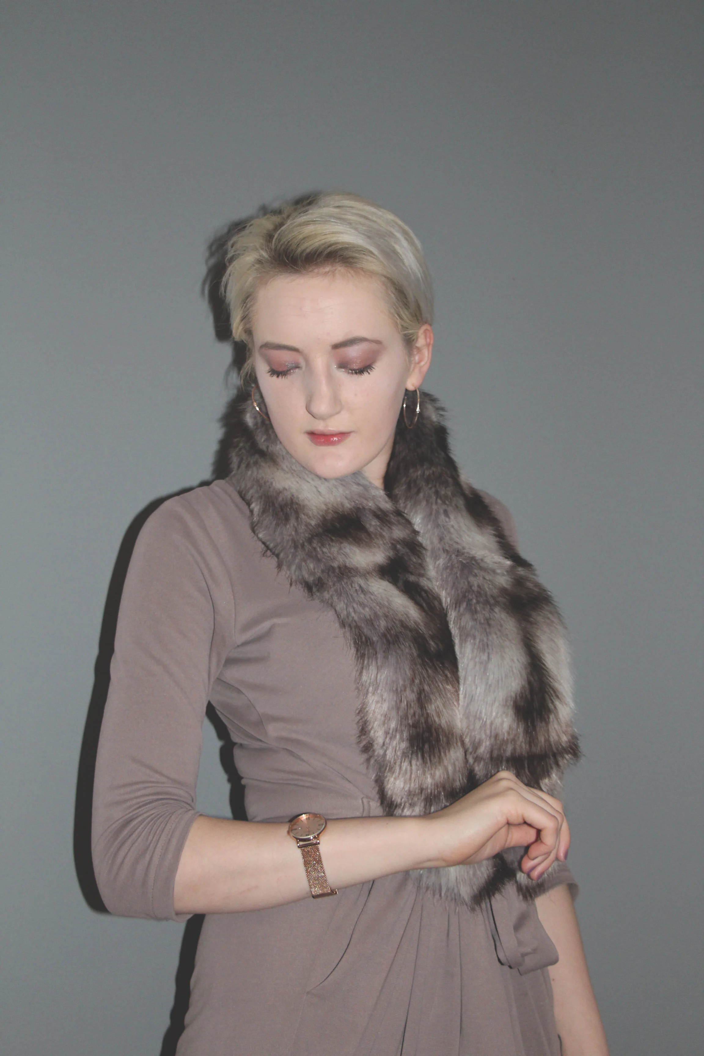 Here, I styled it with a taupe coloured jumpsuit from Cossac, some simple hoop earrings from Stella & Dot, and a cute faux fur stole my Grandma sent me for my birthday gift! This outfit was my look for the Fashion Fix Daily Christmas party in Glasgow!