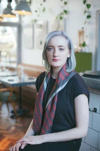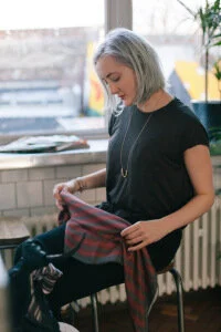 Following on from Wednesday's post, here is another in the Nu Blvck series from our 'Ways to Style' photoshoot with Holly May Wesley, featuring the large pyjama scarf in the rust/navy colour way, and the small pyjama scarf in dark grey tied to my navy grab bag. I styled this look very simply, with a taupe Hayley McSporran top, a Forever 21 brass pendant, Mandi Candi Boutique boots and some H&M high waisted black jeans.
