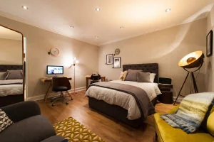 The main part of the pop-up shop is decorated like a living/dining room, with cosy armchairs, wall art and beautiful lamps, and through the back there's a beautiful, luxurious bedroom. Made.com have totally transformed the space (
