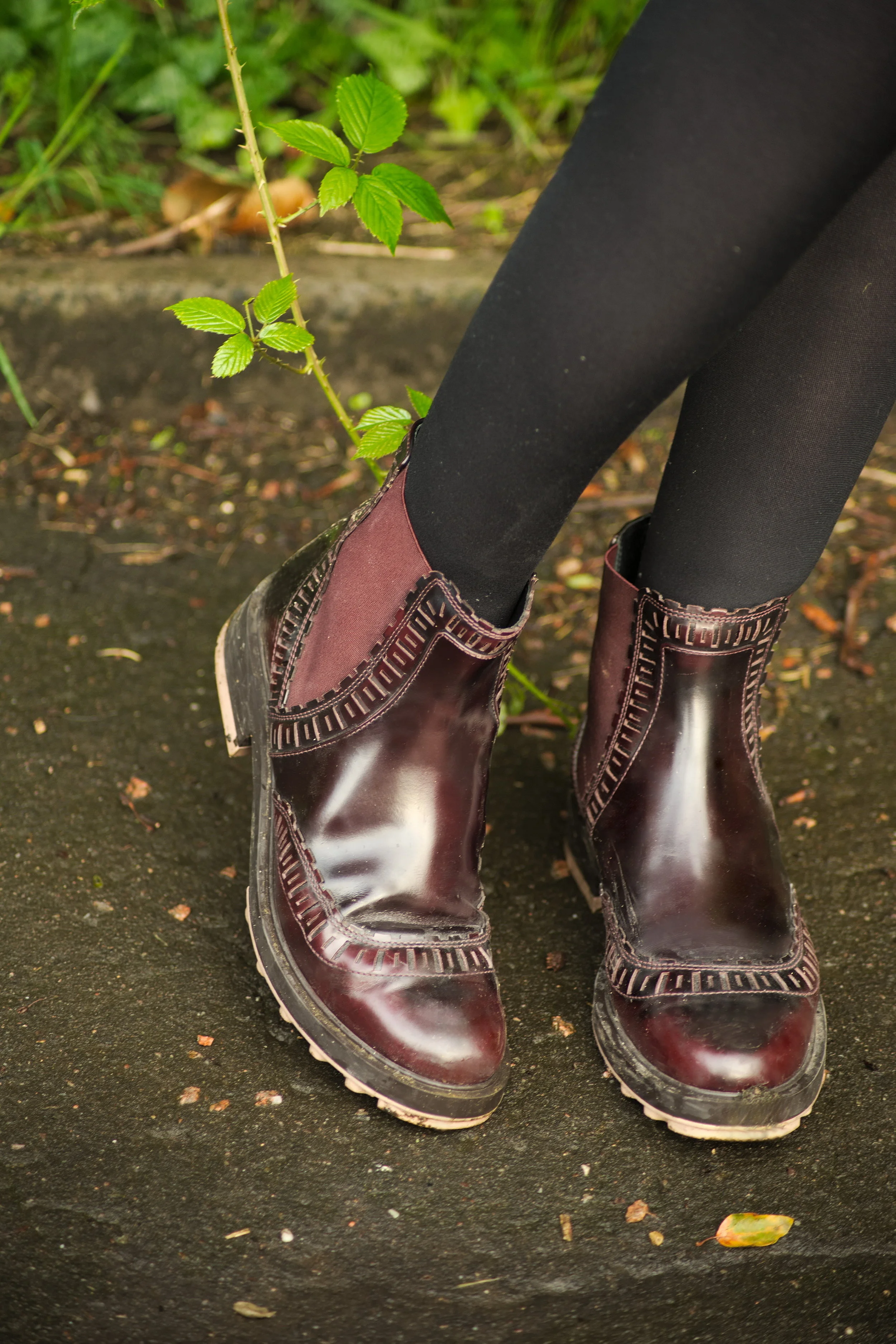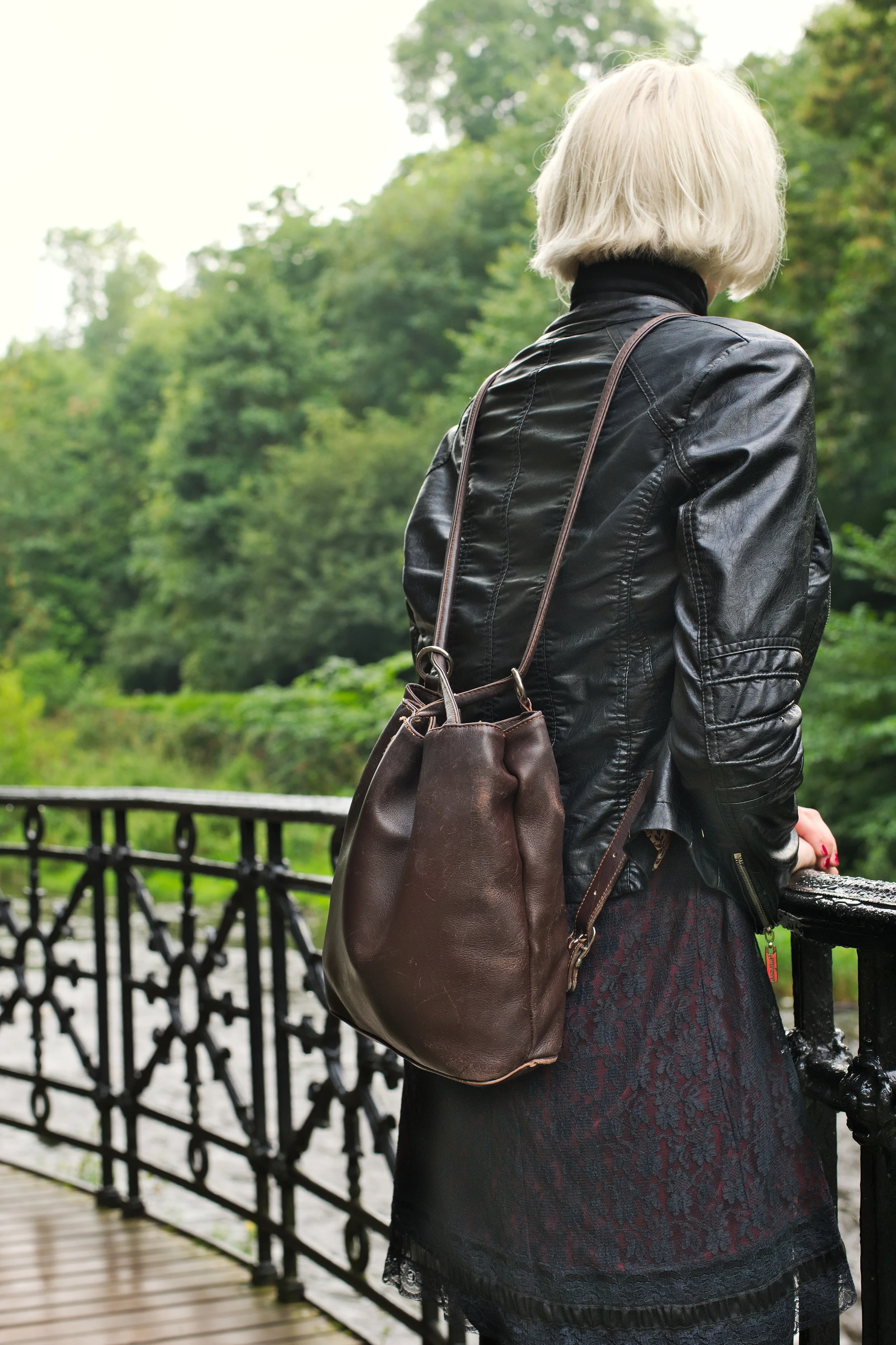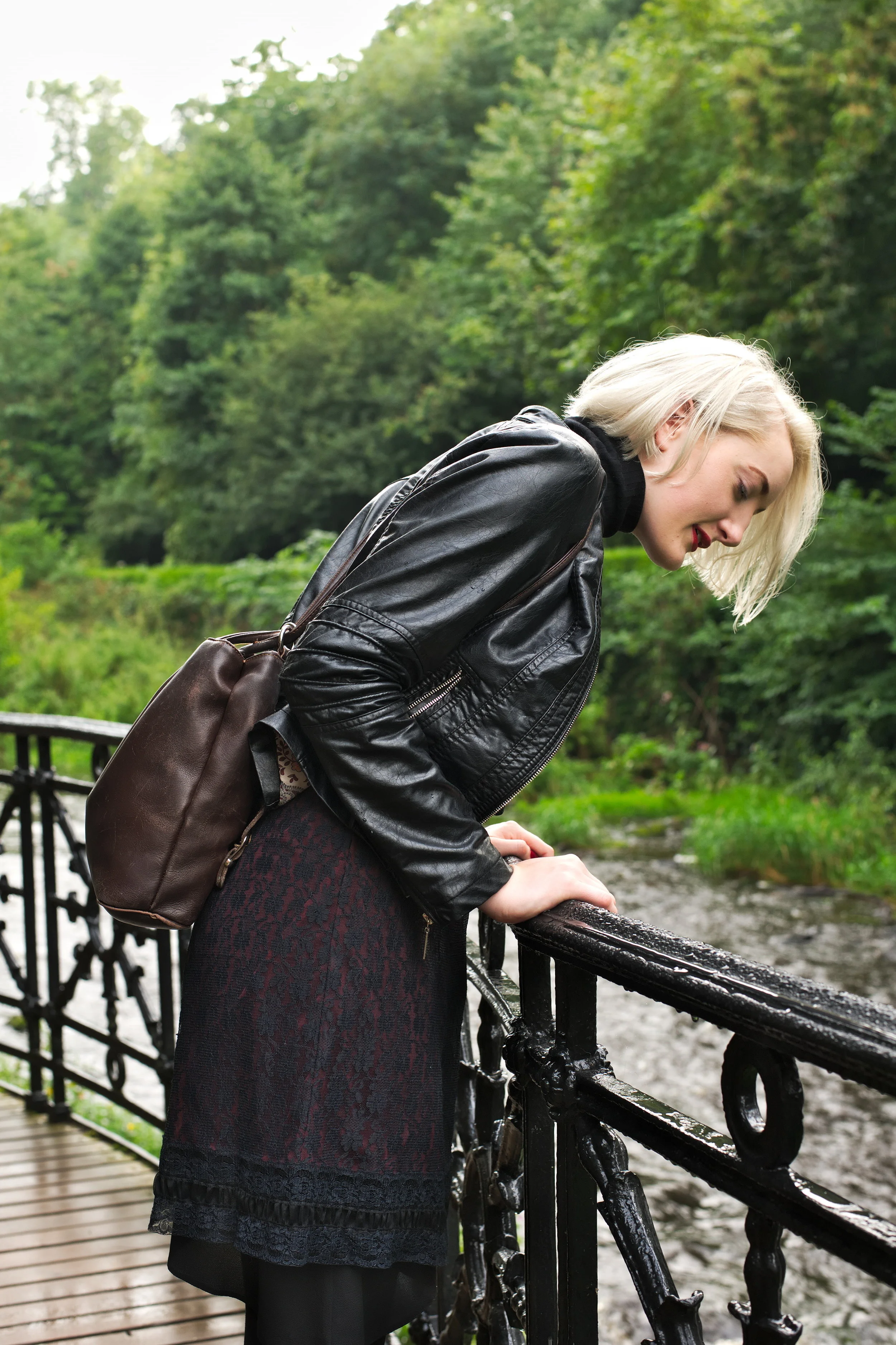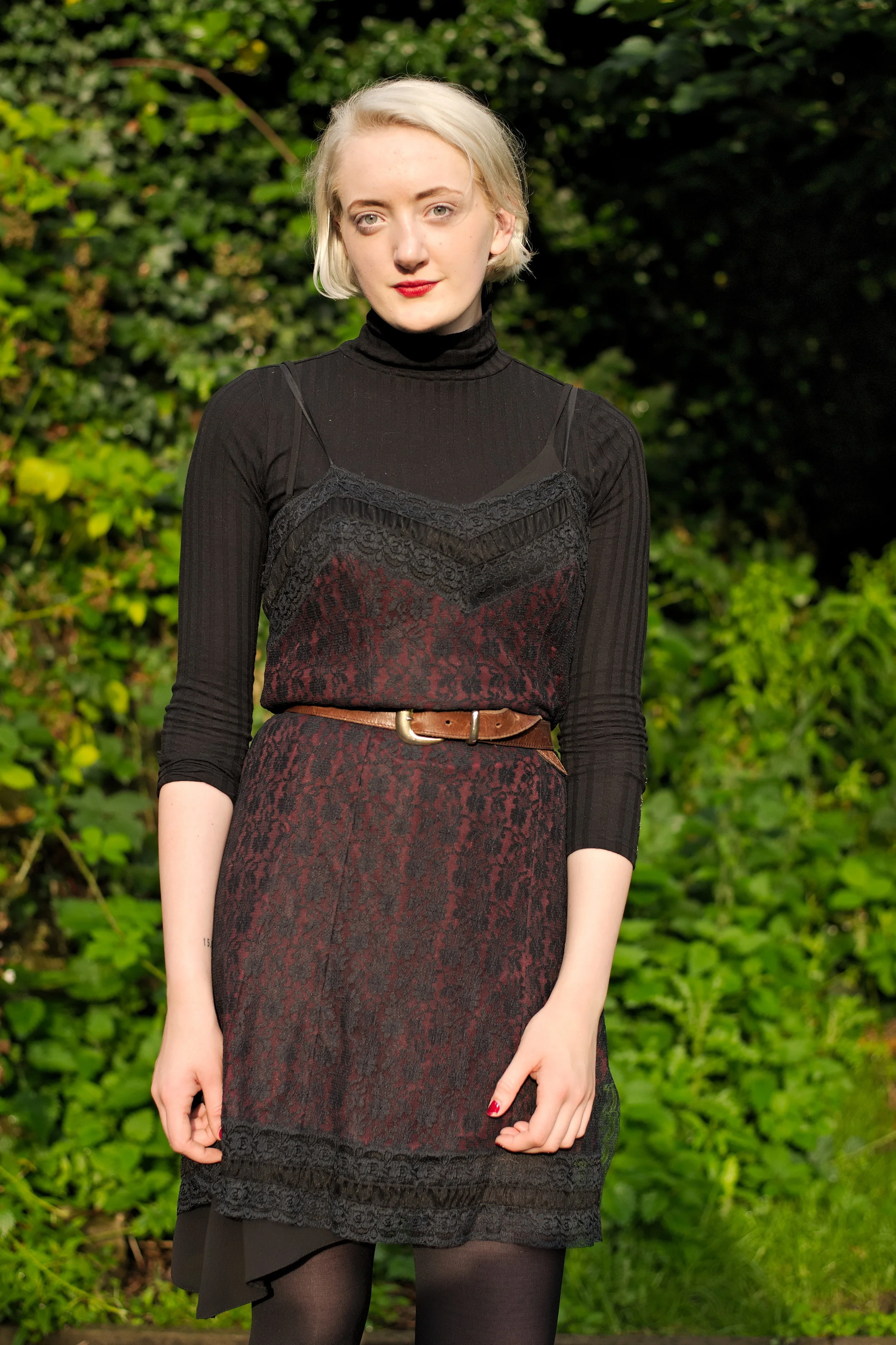 My latest outfit shoot was photographed by Ashley Erdman by the Water of Leith in Stockbridge, and features a 90's lace slip dress layered over a roll neck top, worn with burgundy chelsea boots and a classic biker jacket.
