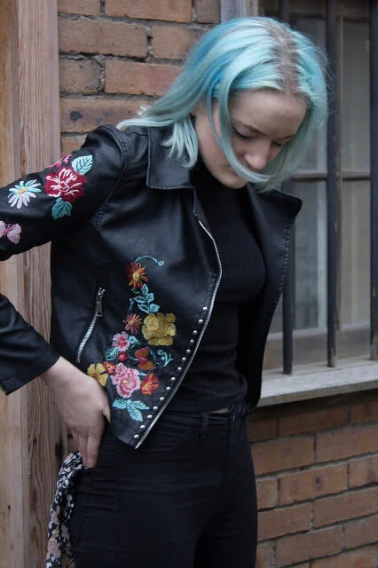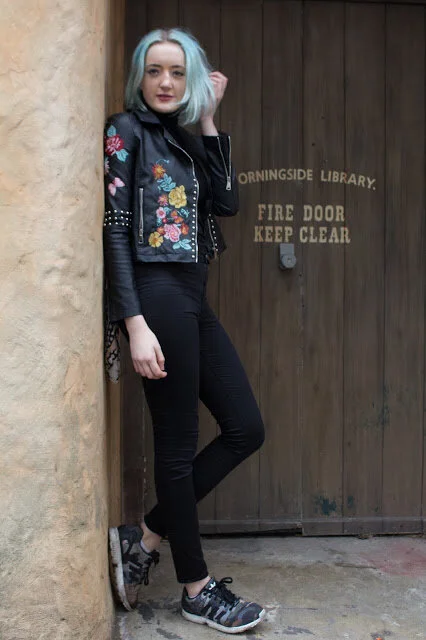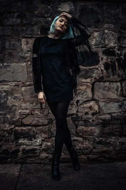 Mandi Candi is a Dundee-Based boutique providing a huge range of trend-led collections by various independent fashion designers. After discovering Mandi Candi Boutique on Instagram (check out their stylish feed here!) I was keen to collaborate, so together with creative mastermind Daina Renton (@dainarenton) I styled up some outfits and ventured to the Morningside Wild West, a strange little derelict avenue near my flat where the buildings all resemble an American cowboy town, and shot the three looks, featuring a black pinafore jumpsuit, a suede mini shift dress, black and silver heeled boots and a gorgeous embroidered biker jacket.