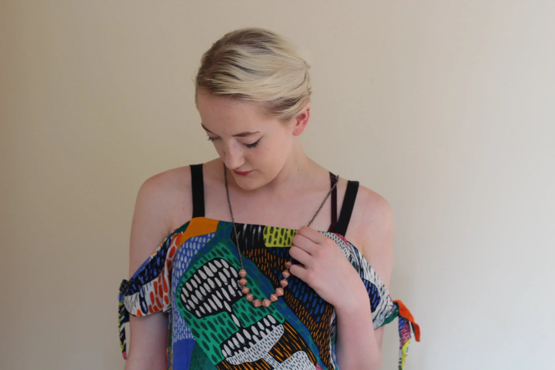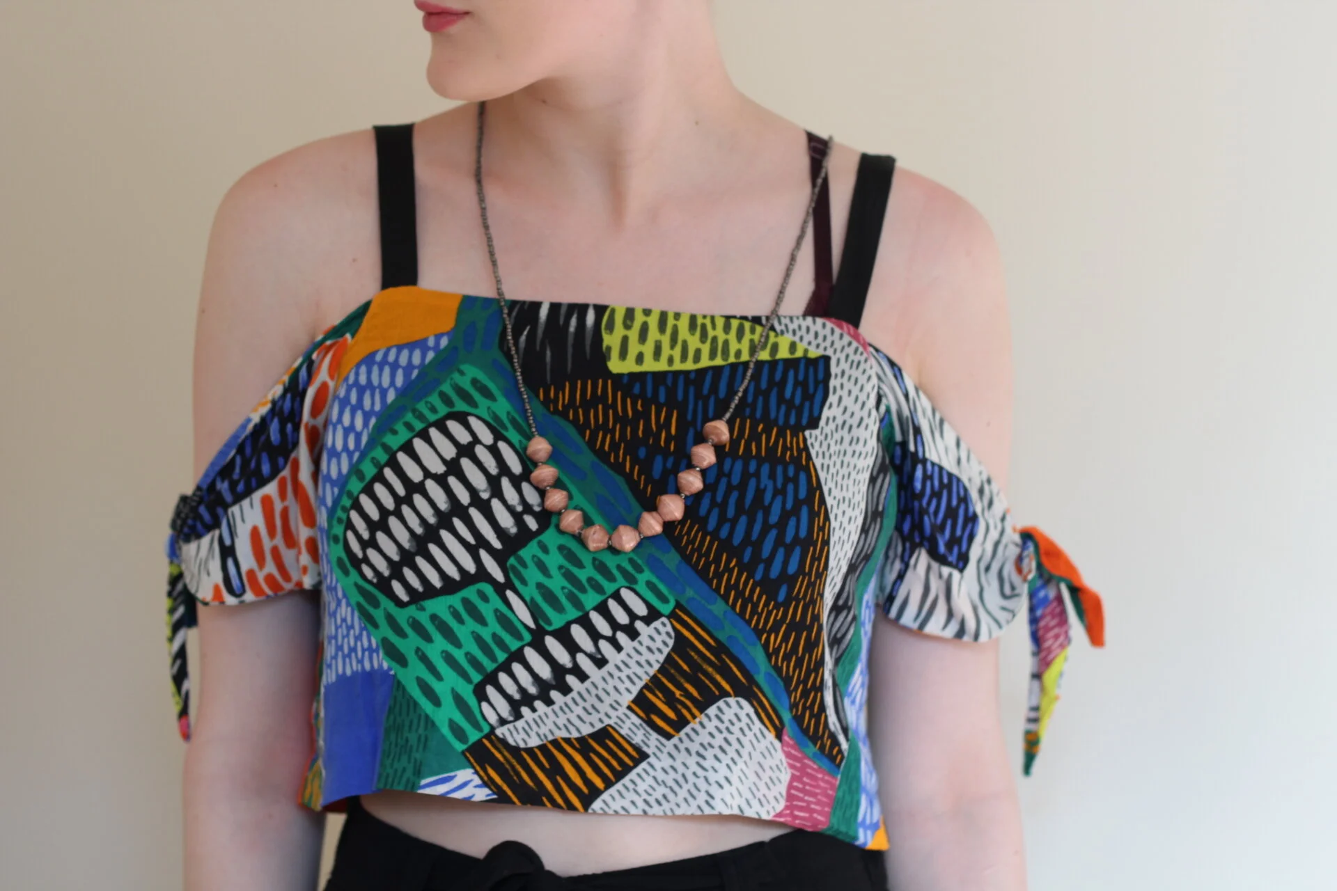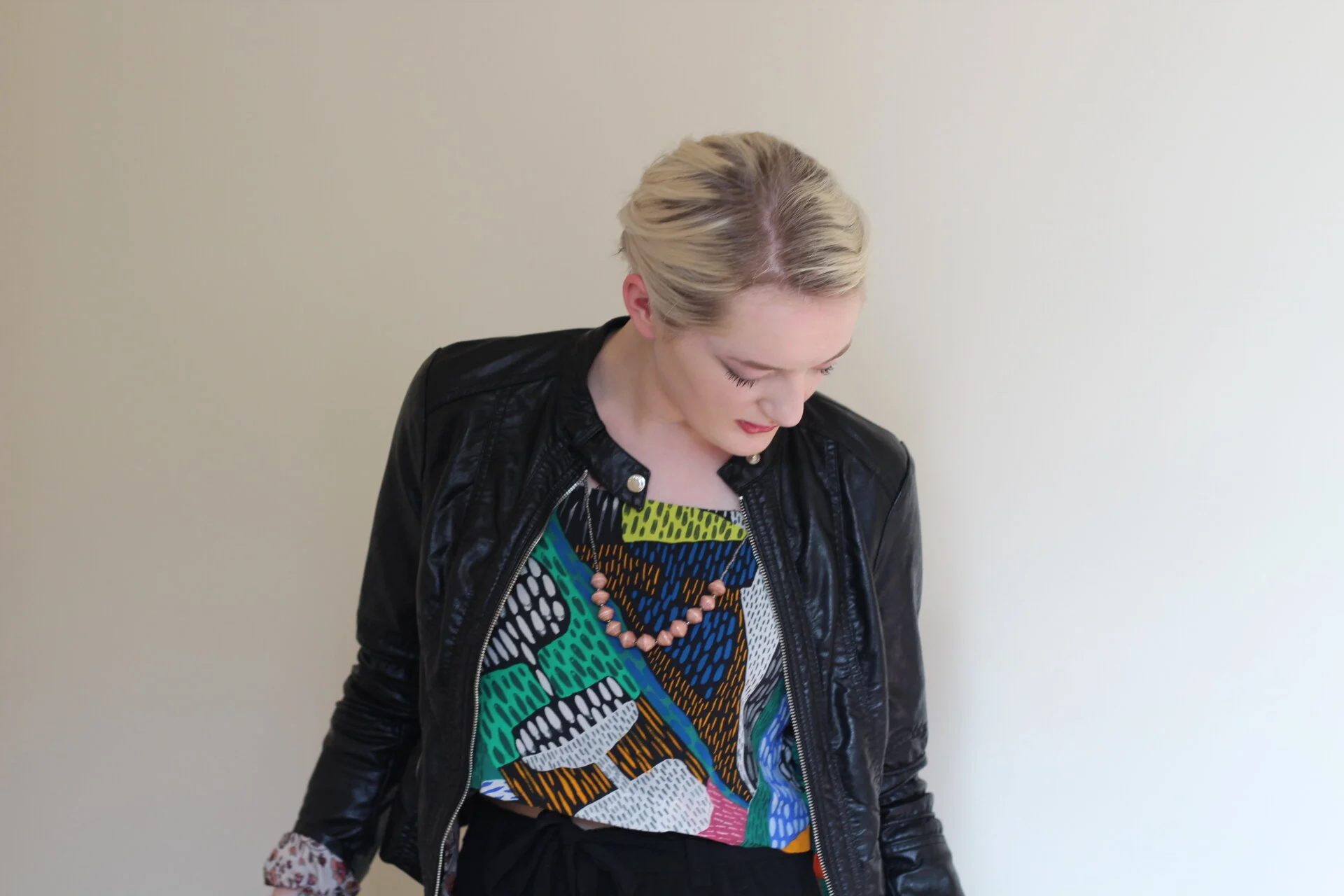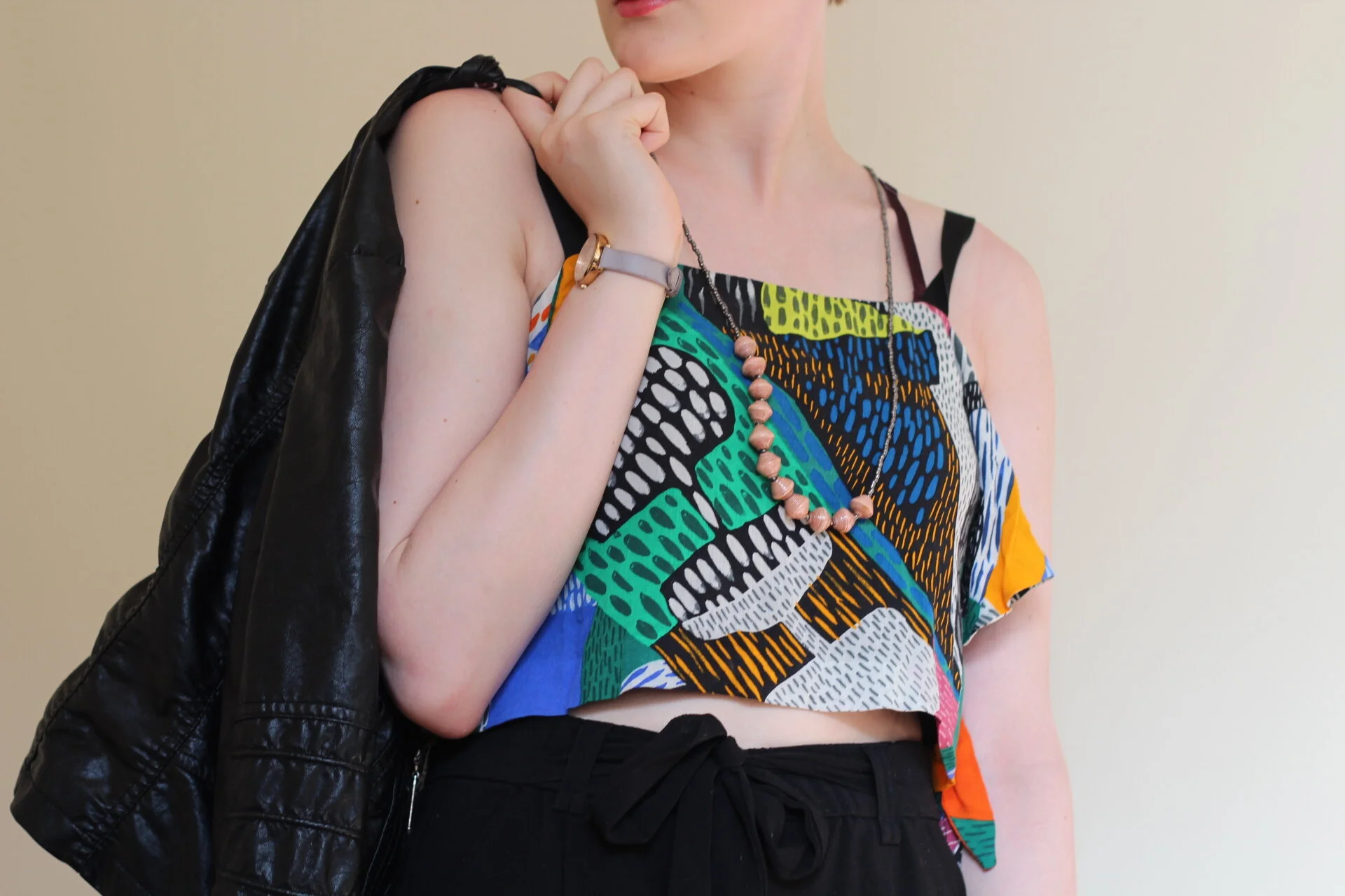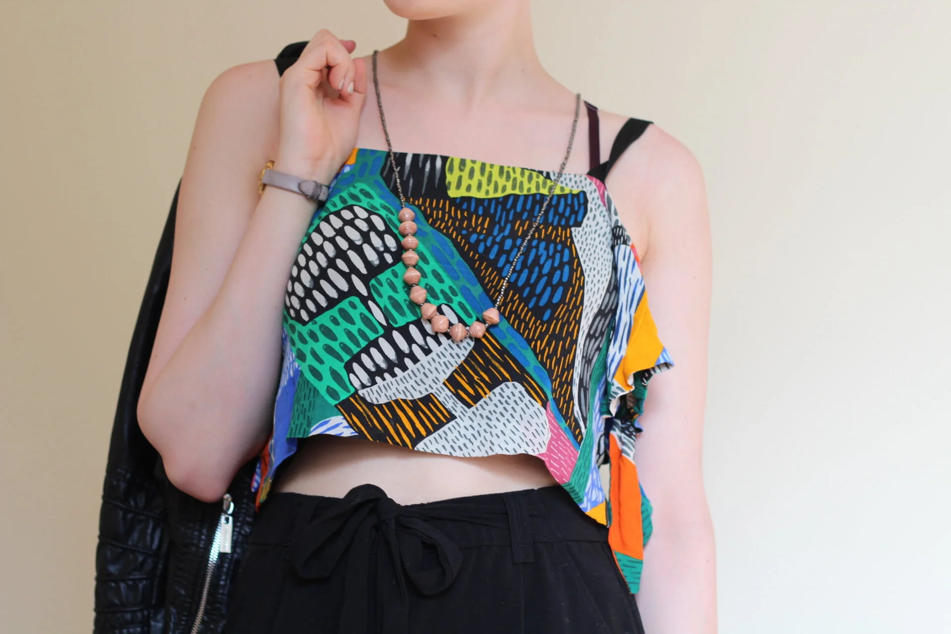 I popped in to Rosy Penguin on a very un-Scottish sunny summer day the other week and walked out with a fitted faux leather biker jacket by Rino & Pelle, and an oversized beaded tribal necklace by Paperchain Jewellery. I have styled them here with an bold print crop top (similar here) and simple black culottes (similar here), both from Zara. The Paperchain Jewellery I was particularly interested in, not only because the unique beads are made from actual paper, but it is an ethical and artisan product with a beautiful backstory. Paperchain is a registered charity which exists to support the rescue of street children in Uganda through fashion, supporting traditional skilled craftsmanship and building creative female communities.