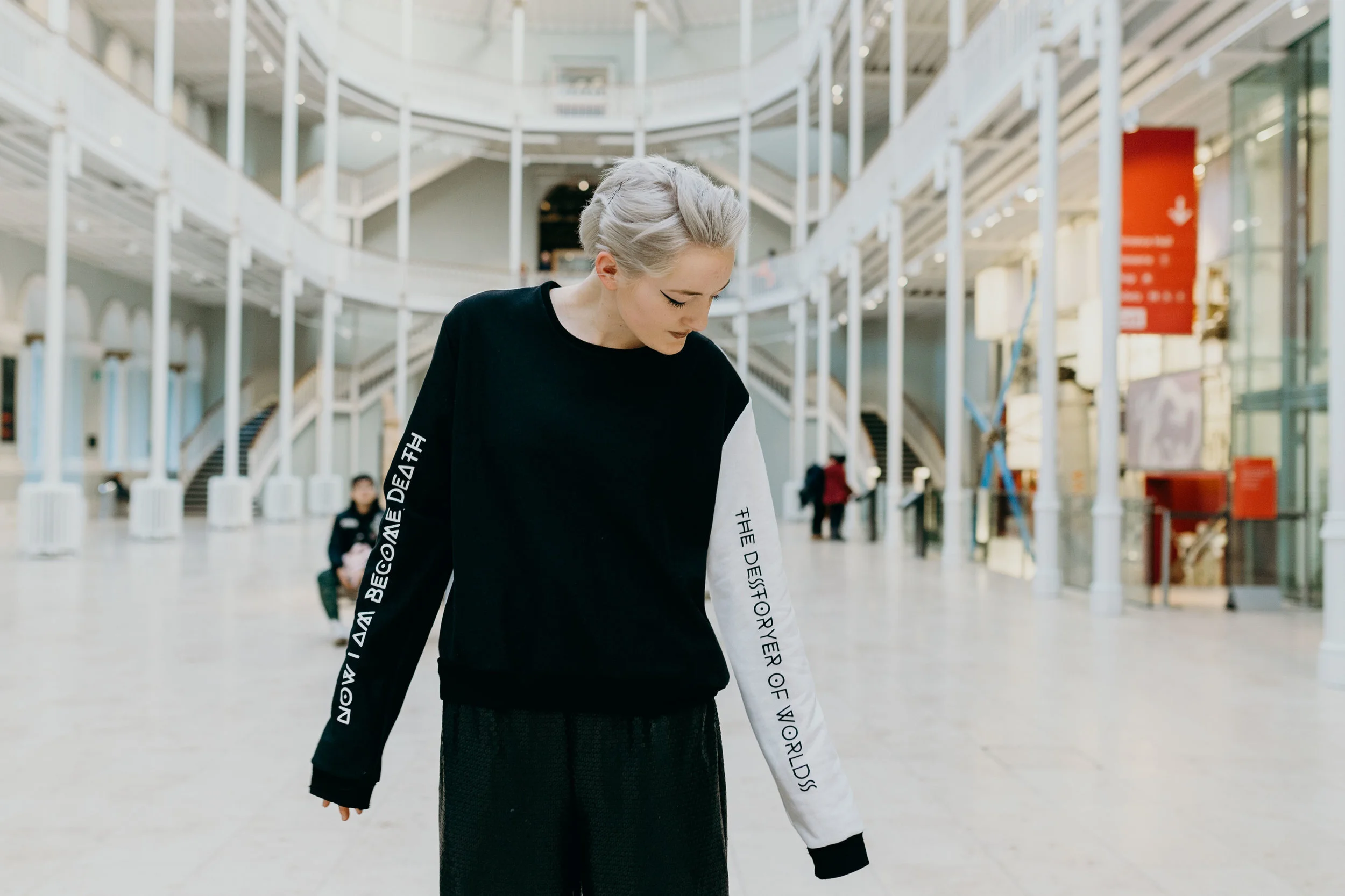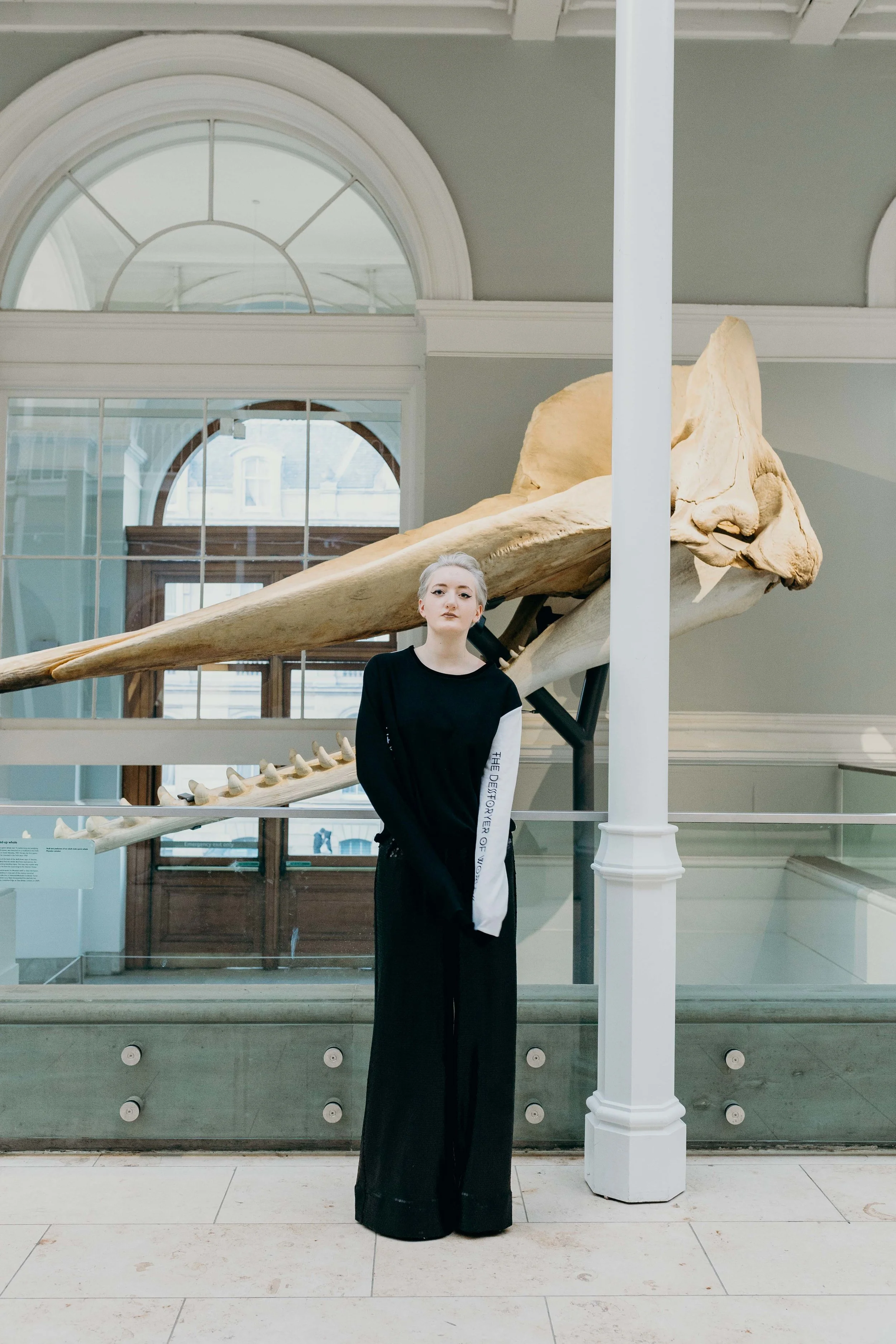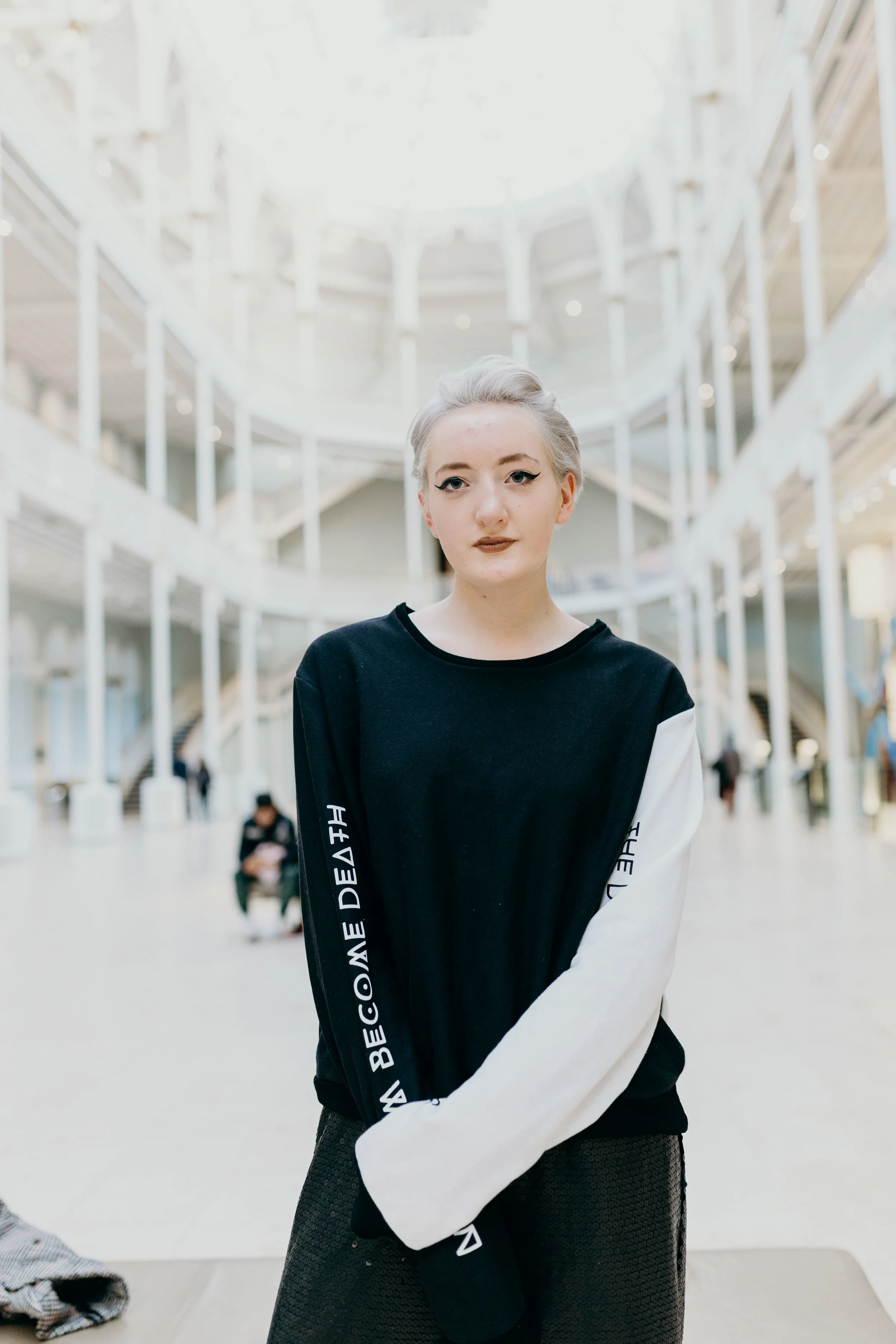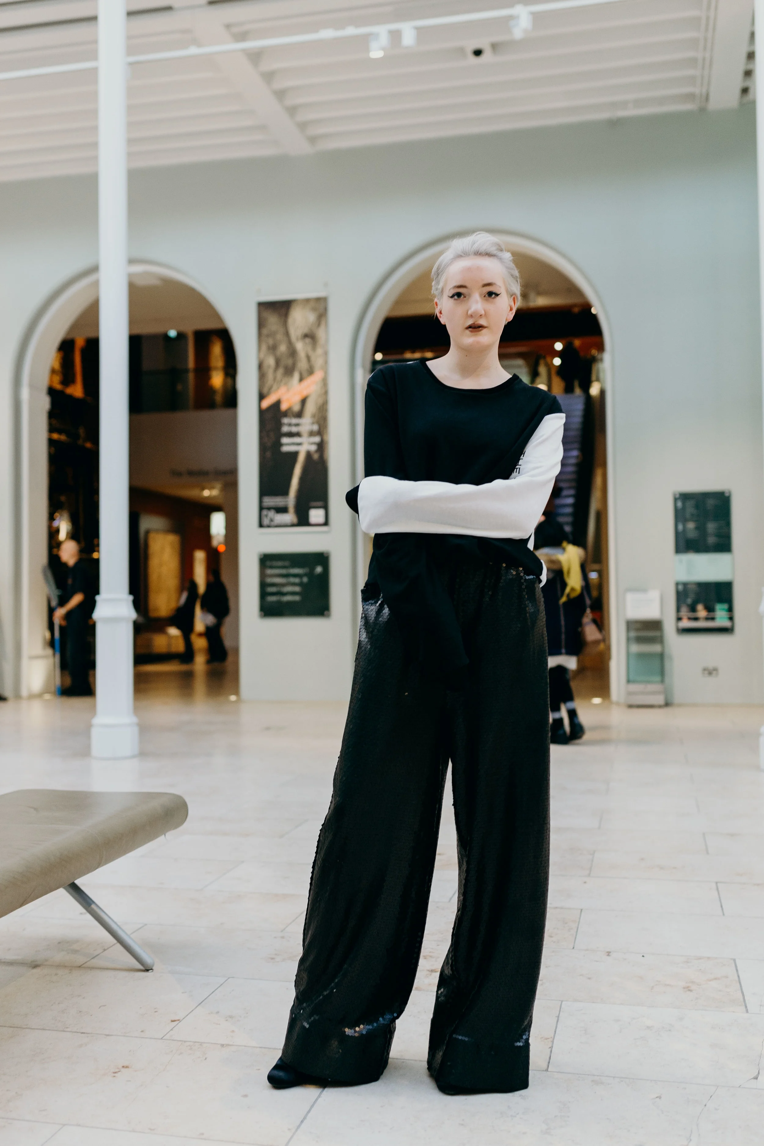 They can, however, prove very difficult to dress down, so when faced with a casual daytime photoshoot, I struggled to find a way to not seem like a total diva in the middle of a museum. Ryan Cowie to the rescue! Last year, I borrowed this sweatshirt from Aberdeen fashion designer Ryan Cowie for a university magazine editorial (see the lookbook and Ryan's full collection here), and my heart broke when I had to send it back. SO I bought it and kept in and now I'm wearing it all the time. I mean, look at it! Cropped and off the shoulder? Check. Extended long sleeves? Check. Monochrome and graphic? Check. Inspired by feminist witch covens? Well duh.