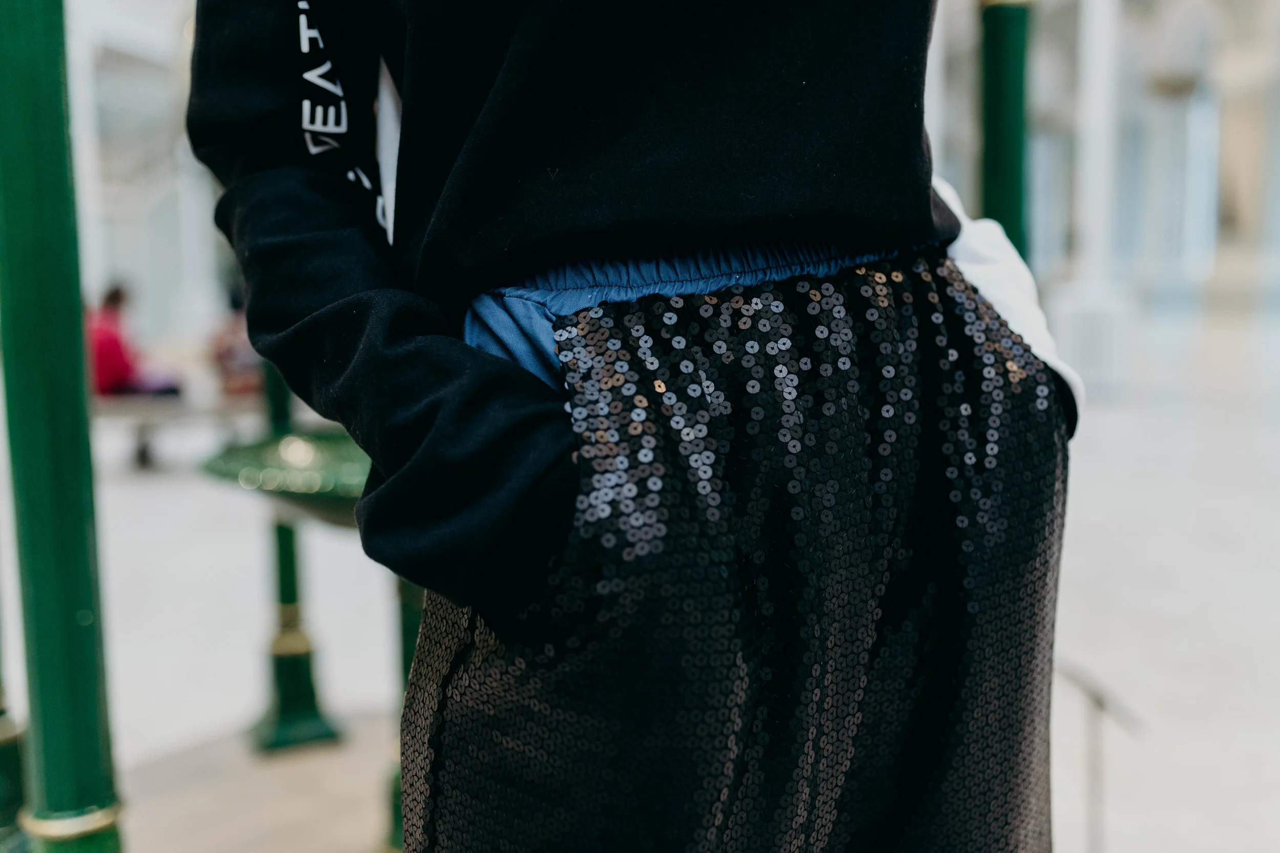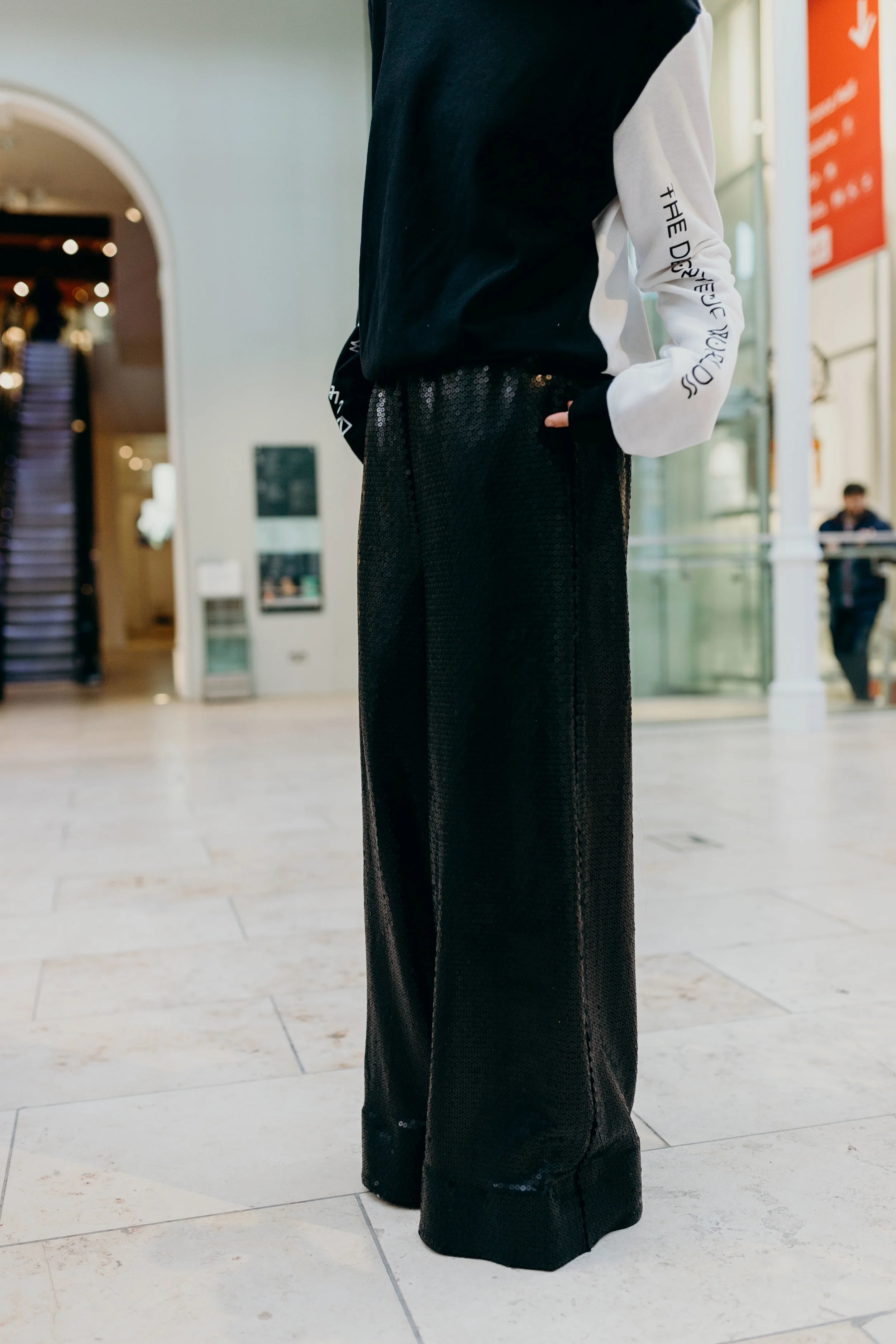 Super wide legged trousers have become my absolute JAM, and right at the top of my go-to pallazzo/flares/harem/bell bottom trousers are these absolute beauties from Birds of Prayers. Extremely high waisted, with massive pockets (always a plus), a bold elasticated wasistband, weighted hems right down to the floor, and covered in matte black sequins, these are my all-time favourite party pants. Birds of Prayers has answered my fashion prayers (get it?) once again, with genuinely beautiful, quality and ethically made clothing that actually fit freaky tall folks like me.