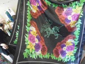 What is interesting about Godiva is how the store manages to mix new designs with vintage pieces so seamlessly to fit with one strong brand identity; a kitsch and colourful print paradise! In the past I've bagged some serious vintage bargains from Godiva, including a beautiful silk men's shirt and a multiway brown leather backpack; in the shop at the moment its all summer colours and floaty shapes, along with classic accessories like leather handbags and printed scarves, with even shoes, belts and jackets thrown in for good measure. I was gifted by Natasha a wonderful Godiva 10th anniversary special edition silk scarf which now alternates between hanging proudly on my bedroom wall to slinging around my neck or hair on any rare non-windy days!