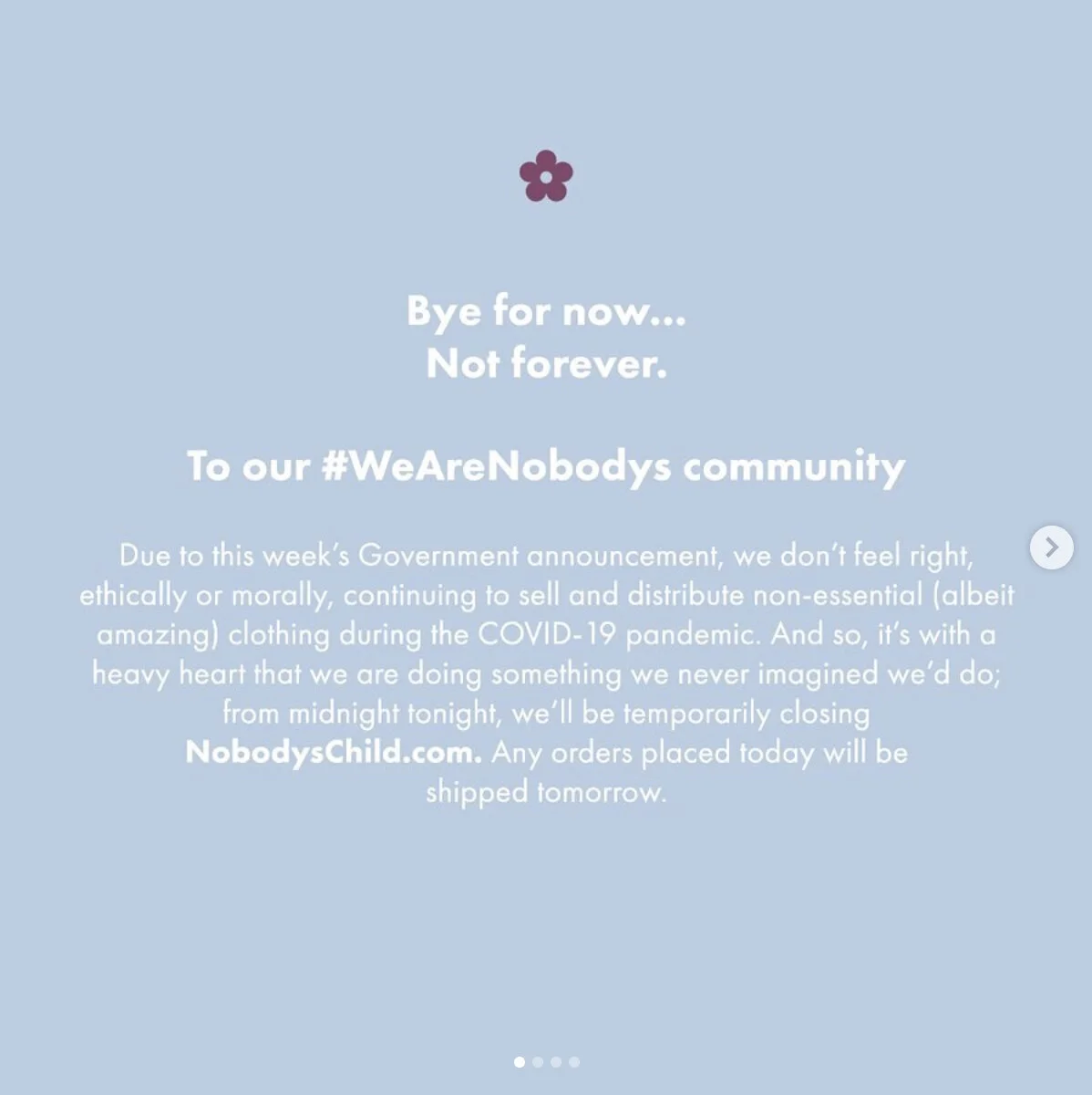 Coronavirus statement by Nobody’s Child. Photo: Nobody’s Child via Instagram