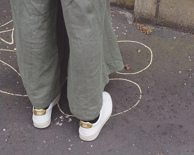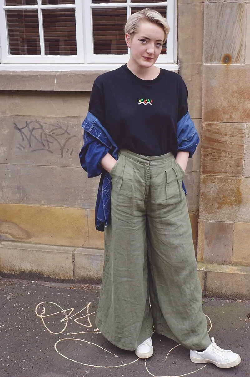 So I decided to stick with the easy and comfy theme for the rest of the outfit, styling the simple white trainers with my new extreme wide leg trousers which I picked up from my new favourite London boutique, ethical fashion store 69B. The brand is Kings of Indigo, and they are 100% linen; I AM IN LOVE! Also, I can't stop buying funky trousers, please send help to this addict. FInally, I wore another new purchase, a logo embroidered tee by my current favourite Scottish fashion designer Ellie Vallely aka Squint Clothing, which I picked up at last weekend's Custom Lane pop-up shop.