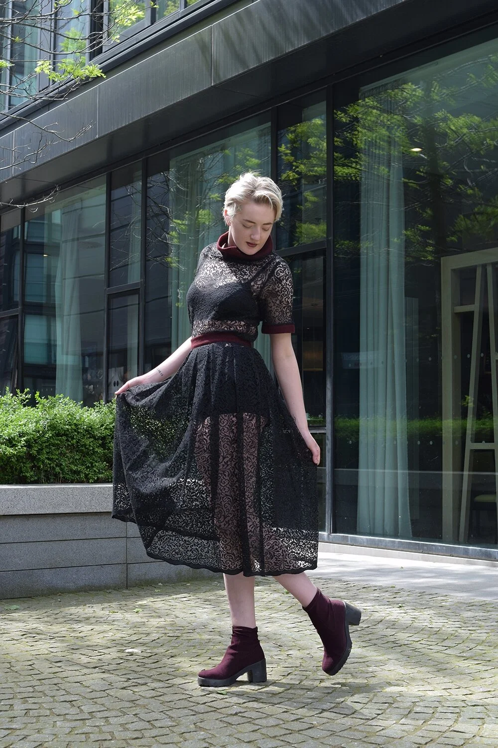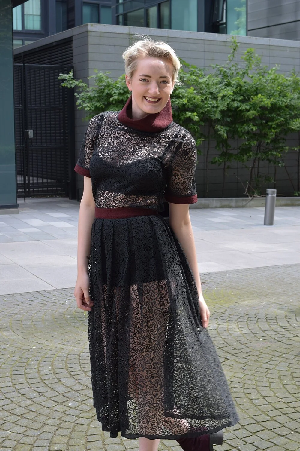 I would wear this outfit to a wedding or a more formal party, like a big birthday, a fancy dinner, an awards ceremony or launch event. The lace is a Scottish madras lace by Ayshire-based manufacturer MYB Textiles, and the cowl neck collar and waistband is made from Harris Tweed from Scotland's Outer Hebrides. Overall, I am thrilled to have found a formal, but fun, outfit from a local, sustainable designer! What do you think?