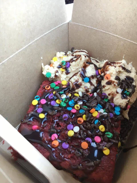 The highlight of our foodie adventure, however, was the cake sundae bar by SugarDaddies bakery (everything is gluten free and many things are vegan!). The cake-masters were so friendly and kind despite the busy-ness and the heat, and we were blown away by the choose-your-own topping selection. I had red velvet cake, with salted caramel frosting, chocolate sauce and sprinkles. Finally, we died a tragic food-coma death. May we be remembered for our excellent taste in fries.